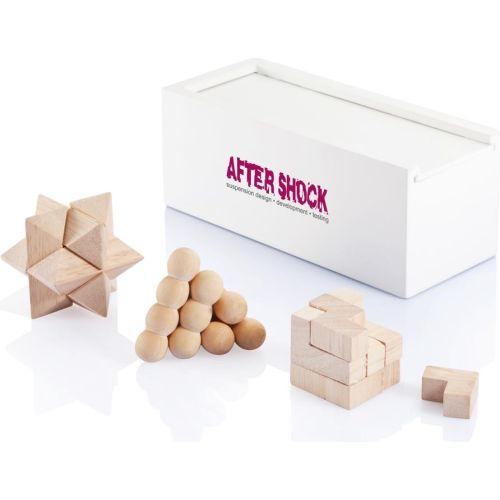 Trainieren Sie Ihren Geist! Denksportspiele sind eine äußerst unterhaltsame Möglichkeit, Ihre Analyse- und Problemlösungsfähigkeiten zu verbessern. Dieses Denksport-Set enthält 3 Puzzles und wird in einer weiß lackierten Kiefernholzkiste geliefert. Hergestellt aus FSC®-zertifiziertem Holz. Wird in einer FSC®-zertifizierten Geschenkverpackung aus Kraftpapier geliefert. Konformität der Richtlinien für Artikeleigenschaften 71-1,71-2 und 71-3, Konformität des PAHS-Inhalts in REAC & ZEK 01-4-08, Konformität der Richtlinie für den Inhalt von Phtalaten, frei von einzel- und mehrkettige, chlorinierten Paraffinen, Verordnung (EU) 2023/1115 EU-Verordnung über die Abholzung von Wäldern. Verpackung: Geschenkverpackung.