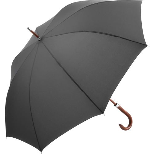Komfortable Automatik-Funktion zum schnellen Öffnen, Windproof-System für höhere Gestell-Flexibilität und bessere Windsicherheit, flexible Fiberglasschienen, Stock aus massivem Echtholz in Dunkelbraun, wasser- und schmutzabweisende Bezugseigenschaften durch original Teflon™ Faserschutz, formschöner Rundhakengriff aus Echtholz, gastfreundlicher großer Durchmesser