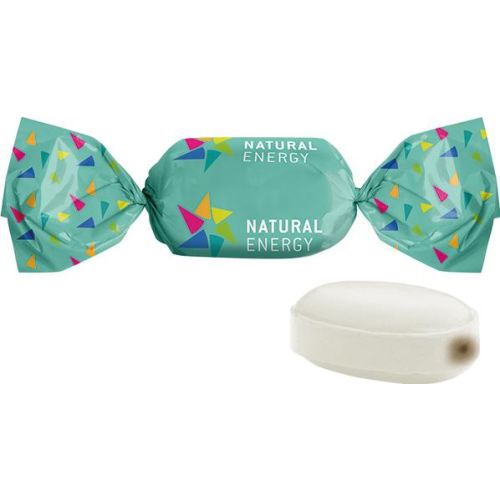 Schoko-Minz-Bonbon im Wickler aus kompostierbarer weißer Folie, individuell bedruckt. Schoko-Minz Bonbon, oval, gefüllt mit leckerem Schokoladenkern, einzeln eingewickelt, Mindestmenge 50 kg (ca. 9. 200 Bonbons), 5 g. Geschmack: Schoko-Minz. Lieferzeit: ca. 10-20 Arbeitstage nach Druckfreigabe. Bitte hier klicken: Zusatz-Infos nach Lebensmittel-Informationsverordnung Haltbarkeit: 24 Monate . Bei Bedarf können Sie aus einer Vielzahl von kostenlosen Gestaltungsvorlagen auswählen. Nutzen Sie hierfür das PDF "Motivvorlagen" auf dieser Seite.