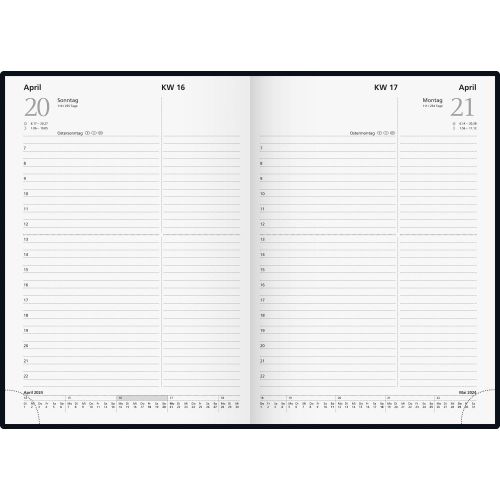 Preiswerter, Buchkalender einsprachig deutsch (D) in der Einbandfarbe Schwarz. 1 Seite = 1 Tag. Graues Kalendarium mit 400 Seiten, Blattformat 14,5 x 20,6 cm, klebegebunden mit Eckperforation, weißes Kapitalband und silbergraues Zeichenband. Blindprägung der Jahreszahl auf dem Buchrücken, Einband Miradur schwarz. Der Buchkalender ist mit Firmenwerbung innerhalb von 3-4 Wochen nach Druckfreigabe lieferbar.