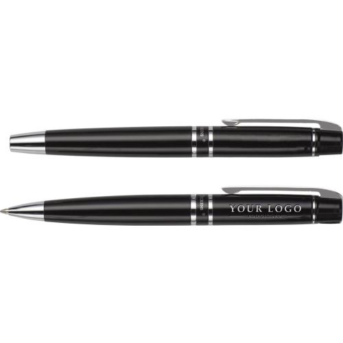 Charles Dickens Schreibset 'Leeds' aus Metall, bestehend aus Dreh-Kugelschreiber und Rollerball, Zierringen aus Metall, verpackt in einem Geschenk-Etui aus PU.