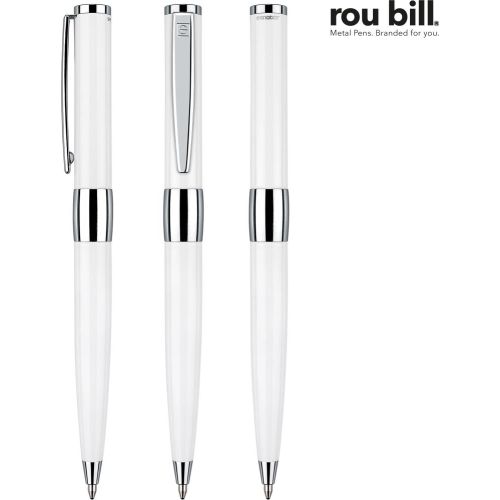 rou bill Image White Line Drehkugelschreiber, rou bill Qualitäts-Met. -Großraummine, Minentyp: G2, Schreibfarbe: blau. Edles Metallschreibgerät in klarem Design und hochwertigem Look. Hochqualitative Materialien, Verarbeitung und Mechanik. Lasergravur auf weißem Lack erscheint in silber passend zu den Beschlagteilen. Außerdem verfügbar Füllfederhalter und Kugelschreiberügbar als Rollerball. Ab einer Menge von 10.000 Stück erfüllen wir auch individuelle Farbwünsche. Nennen Sie uns die PANTONE® Nummer Ihrer gewünschten Farbe und wir produzieren den Kugelschreiber oder auch nur ein spezifisches Teil in Ihrem ganz persönlichen Farbton.