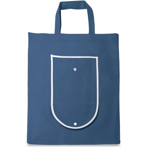 Faltbare Tragetasche aus Non-Woven (80 g/m²) mit 38 cm langen Henkeln. Das Produkt wird gefaltet geliefert (außer bei Veredelung auf der Rückseite). Abmessungen Offen: 380 x 465 mm | Gefaltet: 200 x 110 x 15 mm