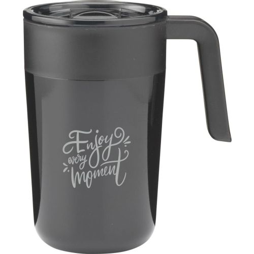 WoW! Doppelwandiger Thermobecher aus recyceltem Edelstahl und PP. Mit wunderschöner, hochglänzender Oberfläche. Ausgestattet mit einem Kunststoffgriff und einem dicht schließenden Aufsteckdeckel mit Schiebe-/Klicköffnung. Geeignet, um kalte oder heiße Getränke auf der richtigen Temperatur zu halten. Nicht spülmaschinengeeignet. RCS-zertifiziert. Recyceltes Material insgesamt: 29%. Fassungsvermögen 400 ml. Edelstahl kann viele Male recycelt werden – die Qualität des Materials bleibt dabei weitgehend erhalten. Durch die Verwendung von recyceltem Edelstahl kommt eine geringere Menge an neuen Rohstoffen zum Einsatz. Das bedeutet weniger Energieverbrauch und weniger Wasserverbrauch.