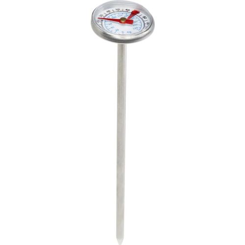 BBQ-Thermometer mit Messbereichen in ℃ und ℉. Durch mechanische Induktion kann die Temperatur direkt und genau in der Ölpfanne, beim Frittieren oder zur Kontrolle beim Grillen gemessen werden. Das robuste Gehäuse aus Edelstahl ist stabil und korrosionsbeständig. Einfach zu bedienen und leicht zu reinigen.