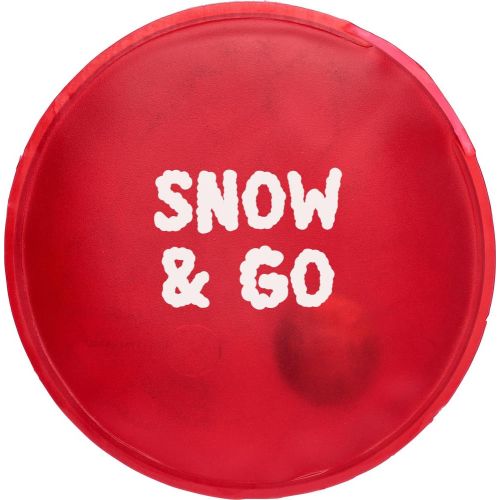 Handwärmer 'Snow' aus PVC, wiederverwendbar, mit aufgedruckter Schneeflocke. Zum Starten des Wärme-Prozesses muss das Metallplättchen im Inneren mehrmals geknickt werden. Vor erneuter Anwendung müssen sie für 6-8 Minuten in kochendes Wasser gelegt werden.