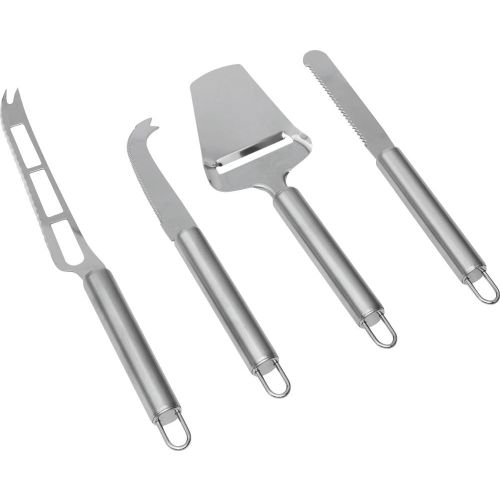 Käse-Messerset CHEESE, 4-teilig: bestehend aus Weichkäsemesser, Hartkäsemesser, Käsehobel und Messer mit Wellenschliff, alle Messer mit praktischer Aufhängeöse, in Box.