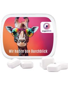 Seine Geschichte zieht sich genauso lang wie sein Hauptbestandteil- deshalb hier nur einige Eckdaten und Gründe dafür, warum wir über die Weiterentwicklung des Kaugummis so dankbar sein können. Denn würden wir ihn so lieben, bestünde er aus Birkenpech, wie in der Steinzeit, oder müssten wir auf Baumharz herumkauen, wie die Indianer? – Nein! Wir mögen seine Süße oder die Frische von Pfefferminz. Aber eines steht fest: Der Drang auf etwas herum zu kauen, hat sich durchgesetzt! Lassen Sie eine Kaugummi-Dose oder Karte mit Ihrer individuellen Werbebotschaft bedrucken und kreieren Sie so ein Werbegeschenk, über das man sich nicht nur heute, sondern zu jeder Epoche der Menschheitsgeschichte gefreut hätte.