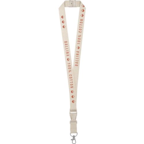 Lanyard aus 100% Baumwolle mit Metallkarabiner, einer abnehmbaren Schnalle aus Weizenstrohfaser und einem Sicherheitsverschluss. 20 x 510 mm
