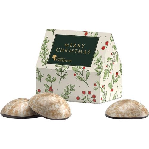 Hausförmige Verpackung aus weißem Karton, mit WEISS Lebkuchen, Haus individuell bedruckt. 4 WEISS Lebkuchen mit Schokoladenboden, Das Lebkuchentray ist mit transparenter Folie umhüllt, 50 g Saisonartikel - solange der Vorrat reicht!. Lieferzeit: ca. 10-20 Arbeitstage nach Druckfreigabe. Bitte hier klicken: Zusatz-Infos nach Lebensmittel-Informationsverordnung Haltbarkeit: Bis mind. 01.03.2026. Bei Bedarf können Sie aus einer Vielzahl von kostenlosen Gestaltungsvorlagen auswählen. Nutzen Sie hierfür das PDF "Motivvorlagen" auf dieser Seite.
