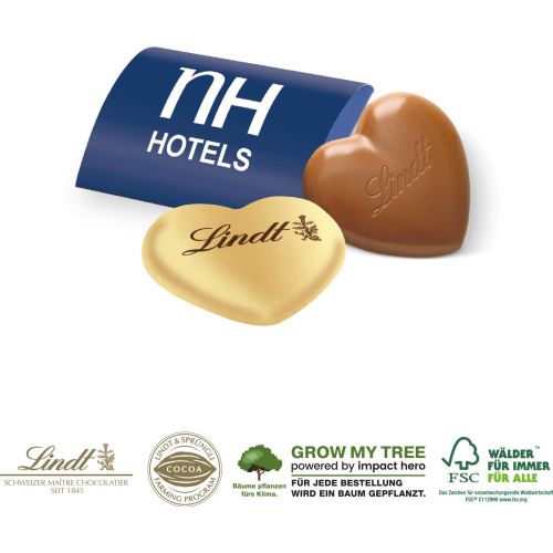 Zeit, einmal Danke zu sagen! Manchmal muss es etwas ganz Besonderes sein. Die edlen Vollmilch-Schokoladenherzen werden in einer rundum individuell bedruckbaren Werbekartonage verpackt. Produktdetails: Schokoladenherz von Lindt, verpackt im individuellen Werbebriefchen. Nachhaltigkeit: Für jede Bestellung wird ein Baum über GROW MY TREE gepflanzt. Wir verwenden FSC® zertifizierten Karton aus nachhaltiger Forstwirtschaft und anderen kontrollierten Quellen. Inhalt: 1 goldenes Schokoladenherz „Vollmilch“ (20 g) von Lindt. Auf Wunsch auch in rot, blau oder grün - Haltbarkeit: 6 Monate. Lieferung ca. 10 - 15 Arbeitstage nach Druckfreigabe. Werbekartonage auf Anfrage gegen Aufpreis auch aus Graspapier, Naturkarton oder Coffee-Cup-Paper verfügbar!