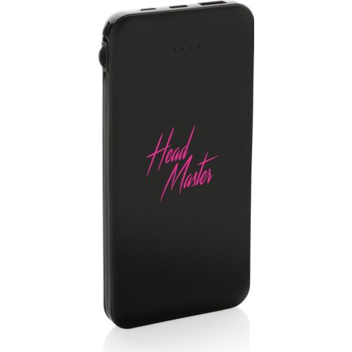 10.000 mAh flache Powerbank mit integrierten Ladekabeln, bei der das Gehäuse aus RCS-zertifizierte recyceltem ABS-Kunststoff und die Kabel aus RCS-zertifiziert recyceltem TPE hergestellt sind. RCS (Recycled Claim Standard) ist ein Standard zur Überprüfung des Recyclinganteils eines Produkts über die gesamte Lieferkette hinweg. Recycelter Gesamtanteil: 21% basierend auf dem Gesamtgewicht des Artikels. Die Powerbank enthält einen langlebigen A-Grade Lithium-Polymer-Akku mit 10.000 mAh. Die Energieanzeige zeigt den verbleibenden Energiestand an, so dass Sie immer wissen, wann Sie den Akku wieder aufladen müssen. Micro-USB-Input 5V/2A; Type-C-Input 5V/2,4A; USB-Output 5V/2A; Type-C-Output: 5V2.4A, iOS-Output: 5V/1A. Artikel und Zubehör PVC-frei. Inklusive PVC-freiem Type-C-Ladekabel aus recyceltem TPE-Material. Konformität der Elektromagnetik-Richtlinie 2014/30/EU, Konformität der Richtlinie für Gefahrgüter 2011/65/EC & 2015/863, Konformität des PAHS-Inhalts in REAC & ZEK 01-4-08, Konformität der Richtlinie für den Inhalt von Phtalaten, frei von einzel- und mehrkettige, chlorinierten Paraffinen, Zertifikat des Recycled Claim Standard. Verpackung: Geschenkverpackung.