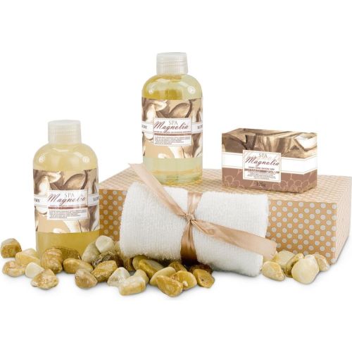 Wie der Name schon erahnen lässt, verwöhnt Sie das Wellness-Set „Magnolia Spa” mit dem blumig-frischen Aroma der Magnolie. Das Präsent, bestehend aus je 180 ml Duschgel und Shampoo, 100 g Seife und einem Gästetuch in einer offenen Box, beweist, dass die Magnolie nicht nur Ihren Garten verzaubern kann, sondern auch noch Ihrem Wohlbefinden dient. Standardartikel unveredelt versandfertig in ca. 2-3 Tagen, veredelte Ware versandfertig in ca. 3-4 Wochen. Expressversand möglich. Lieferung erfolgt ab Werk.