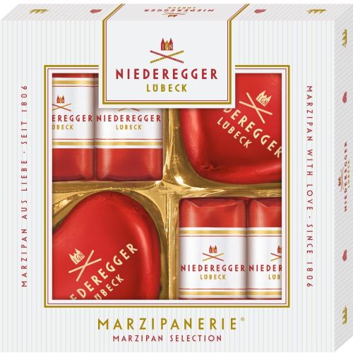 Edle Marzipan Herzen und die beliebtesten Marzipan Klassiker®, zusammengefasst in edlen Geschenkpackungen, ergeben eine ganz besondere Genusswelt für Marzipan-Liebhaber. In modernem Design und zahlreichen Größen erhältlich, sind sie die perfekten Präsente für jeden Anlass. Bei diesem Artikel kann für den Geschenkkarton ein eigener Schuber gestaltet werden. Für die Erstellung eines Korrekturabzuges der Schuber benötigen wir von Ihnen eine Design- und Farbvorlage mit den genauen Farbangaben als belichtungsfähige PDF/X-3 Datei. Die Umsetzung Ihres Motivs ermöglichen wir vorbehaltlich der Einhaltung unserer ethischen Grundsätze. Erst nach erteilter Freigabe des Korrekturabzuges geben wir den jeweiligen Druck frei. Entsprechende Stanzvorlagen werden Ihnen auf Wunsch nach Auftragseingang für die Designarbeiten zur Verfügung gestellt. Werden die Designarbeiten von uns übernommen, berechnen wir einen entsprechenden Aufwand für die Gestaltung. Sorte: Niederegger Marzipan in Zartbitter Schokolade Inhalt: Marzipan Herzen, Marzipan Klassiker®. Zutaten: MANDELN 41 %, Zartbitter-Schokolade 28 %(Kakaomasse, Zucker, Kakaobutter, Emulgator: Lecithine (SOJA), Vanille-Extrakt), Zucker, Invertzuckersirup, Alkohol . Nährwert: 2189 kJ, 525 kcal pro/100 g. MHD: ca. 6 Monate. Design: eigener Schuber. Lieferzeit Muster: 1-3 Werktage. Lieferzeit: 4-5 Wochen.