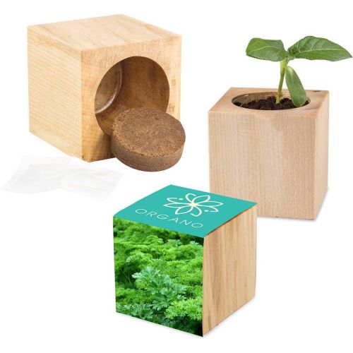 Dieser Würfel aus europäischem Holz bietet noch mehr Platz für das Saatgut und Ihre Werbung. Dieser wird mit beliebigem Samen und einer Substrattablette als Erde geliefert und fordert den Empfänger als Hobbygärtner heraus. Ihre Werbung findet auf der umliegenden Banderole Platz und optional ist eine Lasergravur auf dem Blumentopf möglich. Ein Blickfang auf jedem Schreibtisch und das werbende Unternehmen bleibt in Erinnerung. Inklusive Werbedruck, zuzüglich Druckvorkosten. Lieferzeit: 3-4 Wochen.