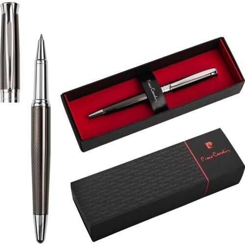 Pierre Cardin Rollerball. Die Stifte haben eine sehr elegante Form und eine feine Gravur uüber die gesamte Oberfläche. Der Rollerball enthält eine deutsche 0,6mm Schmidt-Mine in Schreibfarbe Blau. Wird mit einer schwarzen Ersatzmine in einer luxuriösen Pierre Cardin-Box mit Echtheitszertifikat geliefert. Empfohlene Veredelungstechnik: Lasergravur L1. Maximale Veredelungsgröße: 35 x 5 mm. Abmessungen: Rollerball Pen: 1,2 x 14 cm. Verpackung: 17,5 x 5,5 x 3,5 cm.