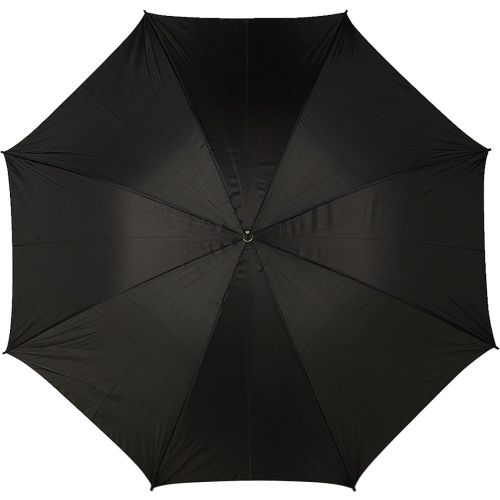 Portierschirm aus Polyester (190T), geradem Holzgriff, Schaft, Doppelspeichen und Spitze aus Metall, Tips aus Kunststoff.