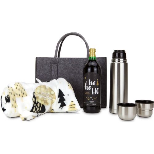 Gemütliche Winterabende in einer praktischen Filztasche verpackt. Hier erhalten Sie eine Flasche Glühwein (1 l), eine passende Isolierkanne (750 ml) mit clever integriertem Zweitbecher im Deckel sowie die Kuscheldecke Merry Christmas (120 x 150 cm, STANDARD 100 von OEKO-TEX®). Die Decke wird schnell zum kuscheligen Begleiter für die kalte Jahreszeit, während Sie die Tasche aus veganem Filz aus 100% recyceltem PET (zertifiziert nach Global Recycling Standard; ca. 36 x 20 x 25 cm) als praktischen Begleiter das ganze Jahr über nutzen können. Standardartikel unveredelt versandfertig in ca. 2-3 Tagen, veredelte Ware versandfertig in ca. 2-3 Wochen. Expressversand möglich. Lieferung erfolgt ab Werk. Bitte hier klicken: Zusatz-Infos nach Lebensmittel-Informationsverordnung.