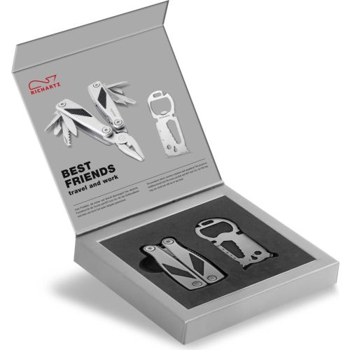 Zwei Produkte, die immer und überall überzeugen. GRIP tool pocket, das nützliche Pocket tool für die Tasche, und KEY tool 16+, das schlüsselgroße Tool mit 16 Funktionen für den Schlüsselbund, sind so klein und doch jeder Aufgabe gewachsen. Die gute Verarbeitung aus matt gestrahltem Edelstahl besticht. Ein Set, der jeden Tag Freude macht. Erfolgreich werben mit RICHARTZ® BEST FRIENDS travel and work! BEST FRIENDS travel and work ist das besondere Präsent für Marken und Unternehmen. Mit individuellen Lasergravuren und individuell gestaltetem Schuber in 4c, werben Marken aufmerksamkeitsstark und aussagekräftig! Zudem überzeugt die Geschenkverpackung mit hochwertiger Optik und einem Magnetverschluss. Die vielen nützlichen Funktionen der beiden Problemlöser sind ein Mehrwert im Alltag und durch die lange und häufige Nutzung ist ein dauerhafter Werbeerfolg garantiert. Durch die hochwertige Geschnekverpackung wirkt das Set ansprechend und verstärkt die positive Bindung von Marke zu Kunde. Der perfekte Werbeartikel für jede Zielgruppe – natürlich von RICHARTZ®!