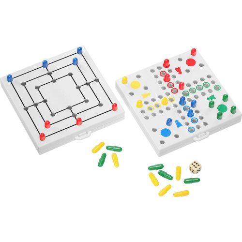 Dieses Reisespiel enthält "Nur keine Panik" und "Mühle". Made in Germany.