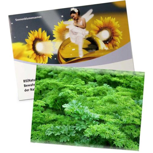 Das große Samentütchen kann vollständig nach Ihren Wünschen gestaltet sowie mit einer Vielzahl an Samensorten befüllt werden. Weitere Papiersorten (Recycling-, Gras- und Natronkraftpapier) sind auf Anfrage möglich. Inklusive Werbedruck, zuzüglich Druckvorkosten. Lieferzeit: 3-4 Wochen.