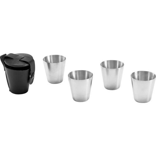 Schnapsbecher-Set aus Edelstahl bestehend aus 4 Bechern von je 25 ml. Der Aufbewahrungsbehälter ist aus PU. Geliefert in einer Geschenkschachtel. ø44 x 62 mm | Schachtel: 45 x 66 x 45 mm