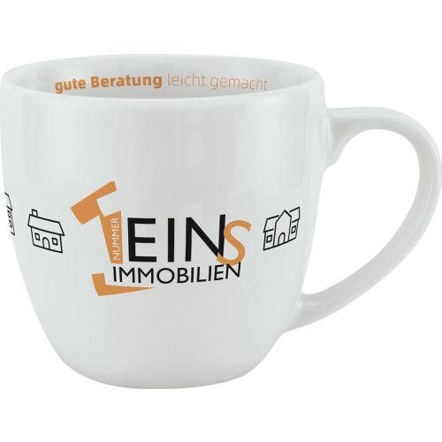Die kleine Schwester der Metropole. In der schlankeren Ausführung ist dieser Becher weiterhin der Hingucker auf jedem Konferenztisch! Auch in der Größe M bietet der Becher Denver – genau wie das größere Modell – reichlich Platz zur freien Gestaltung für die Präsentation Ihrer Werbebotschaft. Unsere schönen Porzellan-Werbebotschafter können mit einer Vielzahl von verschiedenen Veredelungsvariationen versehen werden um Ihre Botschaft langlebig und mit Stil zu vermitteln. Lieferzeit: 25 bis 35 Tage je nach Veredelung. Versandkosten müssen mengenabhängig kalkuliert werden. Deutsche Handarbeit - Veredelung ausschließlich in Thüringen. Preis auflagenunabhängig. Folgende Veredelungstechnologien können auf dieser Tasse angewendet werden: Direkt Druck, Transfer Druck als Teil- und Volldekor, Relief Weiß Druck (partiell erhabener Druck), Matt & Glanz Druck , Edelmetalldruck, Effektpigment Druck, Gravur, Hydrolack (farbige Lackierung), Softtouch (matte Oberflächenlackierung), Nano Glanz (Lichtreflexe durch spiegelnde Metallschicht), Personalisierung, Gastro Druck (Industriespülmaschinenfester Druck), Gastro Spritzung (Industriespülmaschinenfeste Farbe), Innendekor, Bodeninnenbild, Bodenmarke außen, Henkeldekor.