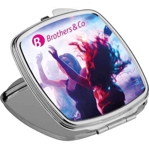 Make-up Spiegel aus Metall, doppelseitig. Praktisch und handlich für unterwegs. Geeignet für Doming. Geliefert in einer Geschenkschachtel. Schachtel: 67 x 75 x 9 mm