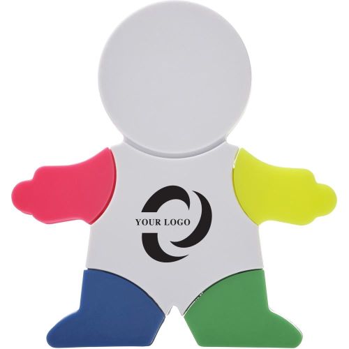 Textmarker 'Brush' in Figur-Form aus Kunststoff mit vier Farben: gelb, pink, grün und blau. Inkl. eines Bildschirmreinigers auf der Rückseite und einem Tastaturreiniger am Kopf.
