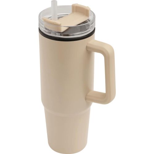 Trinkbecher DRINK ULTY, doppelwandig: innen Kunststoff und außen aus Edelstahl, mit praktischem Griff, transparenter Kunststoffdeckel mit sicherem Schraubverschluss, Silikon-Dichtring, Trinköffnung mit Drehverschluss und transparentem Strohhalm, Füllmenge ca. 900 ml.