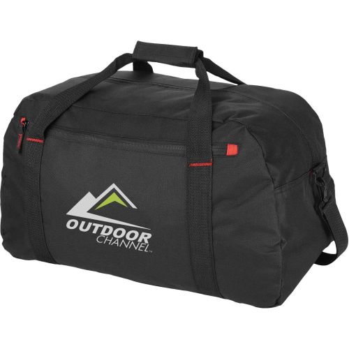 Große Reisetasche mit farbig abgesetzten Ziernähten und Reißverschlusstasche vorne und verstellbarem Schulterriemen.