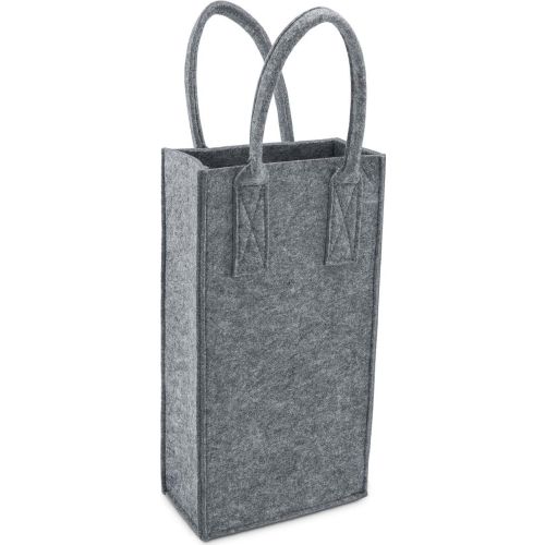 Hochwertige Filztasche in modern meliertem Grauton, praktische Größe für zwei Flaschen, hoher Tragekomfort durch stabile und weiche Henkel, sicherer Stand dank flachem Boden (veganes Filz aus 100 % recyceltem PET, zertifiziert nach Global Recycling Standard). Standardartikel unveredelt versandfertig in ca. 2-3 Tagen, veredelte Ware versandfertig in ca. 2-3 Wochen. Expressversand möglich. Lieferung erfolgt ab Werk.