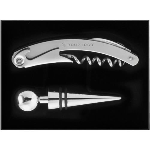 Weinset, 2-tlg., bestehend aus einem Flaschenverschluss und einem Kellnermesser aus Metall.