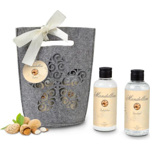 Diese kleine aber feine Filztasche mit dekorativer Ausstanzung enthält je 100 ml Duschgel und Bodylotion. Ein kleines Präsent, das von Herzen kommt. Duft: Mandelmilch Standardartikel unveredelt versandfertig in ca. 2-3 Tagen, veredelte Ware versandfertig in ca. 3-4 Wochen. Expressversand möglich. Lieferung erfolgt ab Werk.